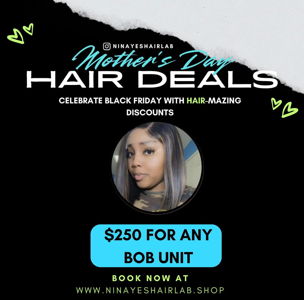 ♥︎ $250 Bob Special (includes 2 bundles of any texture and a closure, style of choice, and wig construction) ♥︎